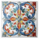 Vibrant tiles display an intricate design filled with swirls and floral motifs. The colours blend harmoniously, creating a stunning visual.