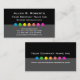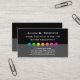 Elegant business cards in elegant black and grey with a row of vibrantly coloured polka dots.