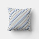 This modern colourful striped pillow features diagonal stripes in blue, pale mint green, and brown tones on a white background.