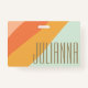 Stand out in style with this colourful diagonal stripe name badge, featuring a retro-inspired pastel palette that’s both fun and professional. The soft shades of mint, peach, lavender, and coral create a playful, vintage vibe, perfect for adding personality to your everyday look. Whether for work events, conferences, or special occasions, this badge is fully customizable with your name or title, offering a unique blend of functionality and flair. Let this vibrant design bring a touch of summer warmth to any setting!