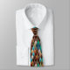 This tie features a pattern of colourful, diamond shaped ceramic tiles. Colours are tans, browns, blues, red, grey, green and white. Really an eye catching, very unique tie!