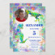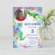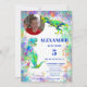 Colourful T-Rex dinosaur 5th birthday party invitation with photo template for the boy or girl who loves dinosaurs. A T-Rex roar to invite Dino fans to a fifth birthday party for dinosaur lovers. Personalize this colourful psychedelic Tyrannosaurus invitation with a photo of the birthday boy or girl, the number of the birthday and the party details and you are all set for a fun packed dinosaur themed dino birthday. All dinosaur species are welcome. Prehistoric jurassic era Dinosaur illustrations, original artwork by artist by Catherine Sweetman
