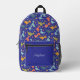 Charming backpack with a delightful design, featuring a cute and colourful dinosaur cartoon pattern set against a blue backdrop, personalized with a printed name. This adorable backpack showcases a vibrant dinosaur cartoon pattern in multiple colours, creating a fun and playful design. The backpack's blue colour scheme enhances the appeal of the cute dinosaur cartoon. Additionally, the backpack is personalized with a printed name, making it uniquely special.