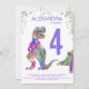 Colourful Dinosaur Girls 4th Birthday Party Invitation
