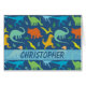 Colourful Dinosaur silhouette pattern that you can personalize and add your own name. Tyrannosaurus Rex, titanosaurs, Triceratop, raptors, Ankylosaurs, Dino-Birds, Stegosaurus, Apatosaurus, Pteranodon and more in a colourful pattern in blue background, and dinosaurs in green, blue, yellow and orange.