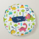 Colourful Dinosaur Pattern with Kids Name Round Pillow