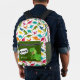 Colourful Dinosaur Pattern with Name T-Rex Green Printed Backpack