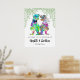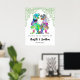 Welcome you guests with this fun colourful psychedelic dinosaur themed wedding welcome poster sign with funny dinosaur bride and groom with watercolor botanical greenery. If you and your partner love dinosaurs this is the perfect way to bring some roarsome dino love to your special day. Unique T-Rex and foliage watercolor illustrations in blue pink purple yellow orange and green hues. Easy to use templates with modern whimsical typography script. Original artwork by artist Catherine Sweetman