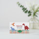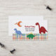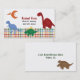 Cute mommy play date card done in white, with a colourful plaid design, at the bottom of the card. Fun children graphics of colourful dinosaurs decorate the front and back of the card. Text in red and black is fully customizable to suit your needs. Great looking mommy card, that's great for arranging play dates, with other moms, and baby sitting co-ops.