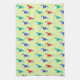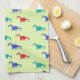 Colourful dinosaurs pattern on green kitchen towel