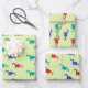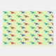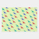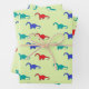 Colourful dinosaurs pattern on green wrapping paper sheet