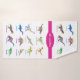 Add a Childs name to create the perfect personalized beautiful watercolor colourful pink palaeontology educational bathroom or bedroom en-suite decor for the girl who loves dinosaurs in pink colour theme. Dino personalized bedroom decor with 12 Dinosaurs in psychedelic bright colours with their dino names on a teal background. This fun colourful pattern includes all the prehistoric jurassic era favourites including T. rex or tyrannosaurus, velociraptors, brachiosaurus, brontosaurus, stegosaurus, the flying pterodactyl, triceratops, spinosaurus, ankylosaurus, plesiosaurs, parasaurolophus and pachycephalosaurus a fun spelling challenge for any child.