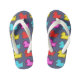 Fun flip flops for kids decorated with colourful polka dot ducks on a blue background (background colour can be customised)