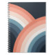 Abstract illustration of retro style rainbow design in pink, pastel pink, grey, turquoise, blue, dark blue colours on navy blue background