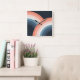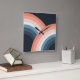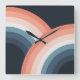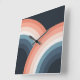 Abstract illustration of retro style rainbow design in pink, pastel pink, grey, turquoise, blue, dark blue colours on navy blue background