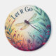 Colourful Dragonfly Floral Let it Go Inspire Quote Classic Round Magnet, elegant watercolor painting of a dragonfly with flowers and botanical elements, with an inspirational saying "Let it Go" in a trendy, modern typography.