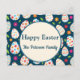 This is cute Custom Easter Holiday postcard featuring colourful decorative eggs pattern with flowers in pink, orange on dark blue background. There is custom name , return address and custom message in the back that you can change to your family name by using personalize button.