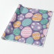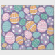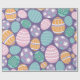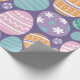A lively and festive pattern showcasing a collection of intricately decorated Easter eggs. Each egg is adorned with unique floral, stripe, and zigzag designs in shades of purple, pink, green, and orange, creating a delightful springtime palette.