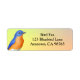 Original fine artwork of a wild Eastern bluebird against a pretty 0astel coloured background by nature artist and illustrator Carolyn McFann of Two Purring Cats Studio printed on customizable address labels for all who love backyard birds.
