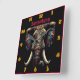 A stunning representation of an elephant, adorned with intricate patterns and vibrant colours