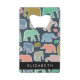 Colourful Elephants, Elephant Pattern, Your Name Credit Card Bottle Opener