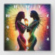 Colourful Embrace of Two Figures in Abstract Art Square Wall Clock
