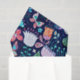 Colourful exotic sparkling texture flowers in a seamless pattern over dark blue background. There is matching wrapping paper and a ribbon.