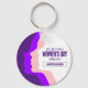 Celebrate IWD (International Women's Day) on March 8th with this colourful keychain, which features purple, peach, and white silhouettes of women's faces with the 2024 theme and hashtag Inspire Inclusion in elegant block lettering. Reverse shows identical design.