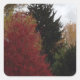 Colourful autumn trees in the colours of red, yellow, orange, yellow green and green, are printed on stickers. There is a light grey sky in the background. Thank you for shopping at CherylsArtPhotos on Zazzle.