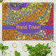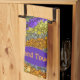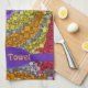 I like to keep my hand towel separate from the dish towel and it's tough for other people to know which to use. Here's an idea using a colourful kitchen towel design sporting a bounty of fall coloured mini boxes. A purple colour (plucked from the design) band and oval along the bottom allows text to stand out from the design. Fill in the template field with your words or family name, initial or click the customize to select a font style, size and colour you prefer. You can select from one of the other towels with the same design but different colour text band for the hand towel.