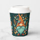 A Paper Cup Design Of Colourful Gnomes For Fall Parties With Falling Leaves In Orange and Teal