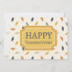 Thanksgiving greeting card with words "Happy Thanksgiving" on a background of colourful fall leaves. Add your own message to the back.