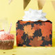 Colourful maple leaves and pumpkins patterned gift wrapping paper in orange, gold and brown on a black background - by katz_d_zynes