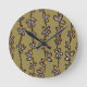 Colourful Falling Petal Flower Florals Olive Green Round Clock