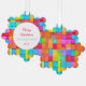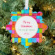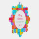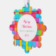Abstract Art Watercolor Pattern in pink, yellow, green, blue, orange, white trim with custom MERRY CHRISTMAS in red, FAMILY NAME in green, YEAR in red. Easy to personalize text, text colour, font. Great Holiday greetings for ANY family, person, pet, baby announcement, at home or office. Modern, Colourful, Festive. Mix and match entire Abstract Art Collection by TMCdesigns.