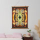 The polyester fabric displayed many wrinkles and several sharp creases throughout. At the bottom of the tapestry, I noticed a bulge in the fabric because it was not pulled tight enough before being connected to the wooden boards. It took me over an hour to spay water on the tapestry before putting it on an ironing board where I used a warm iron over a polyester cloth to remove the wrinkles and creases in the material. I was able to get out the wrinkles and creases that made that tapestry look as beautiful as its picture.