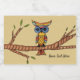 Colourful Fantasy Owl Blue eyes on Tree Branch Tan Food Label