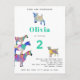 Farm Goat 2nd birthday party invitation for the child that loves farm animals. Cute colourful, psychedelic goats in vibrant pink, purple, blue, orange, yellow and aqua with pigmy goat, baby goat and goats standing on goats. This fun barnyard animal birthday party invitation is easy to personalise to create a unique fun birthday party invitation ideal for children and adult goat lovers. Original artwork by artist Catherine Sweetman
