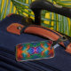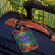Colourful feather swirl luggage tag