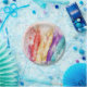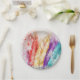 Very colourful modern paper plate, with watercolor artwork of red, yellow, purple and teal feathers. Great for any occasion. Matching products are available.