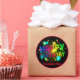 Colourful Festive Happy Birthday Customizable Round Sticker. Party supplies for your special birthday party. @Miri Creations - Created For You Only with You in Mind
