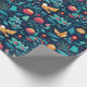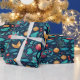 Vibrant wrapping paper features cheerful birds, baubles, and foliage, perfect for embracing the spirit of the holiday season and joyfully wrapping gifts for loved ones.