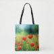 A cheerful tote bag, the perfect gift for a flower lover. A colourful landscape with a field of red poppies in vibrant watercolor. The bold colours of red, green and blue evoke a warm summer's day.