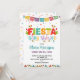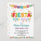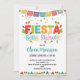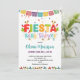 Fun and festive Fiesta Baby Shower invitation featuring bright papel picado banners, maracas, chili peppers, cacti, and playful lettering. Perfect for a lively Mexican-inspired baby shower...