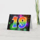 The front of this exciting, fun, and vibrant greeting card design features a colourful pattern inspired by celebratory fireworks, along with the number "19" featuring a multicolored rainbow like gradient pattern, on a black coloured background. The inside features a customized greeting message, or could perhaps be cleared and left blank if a message is to be written by hand instead. A greeting card like this might be a fun way to celebrate somebody’s nineteenth birthday, or perhaps a couple’s nineteenth wedding anniversary, or some other 19th event. [~Z0000342]