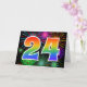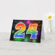 The front of this exciting, fun, and vibrant greeting card design features a colourful pattern inspired by celebratory fireworks, along with the number "24" featuring a multicolored rainbow like gradient pattern, on a black coloured background. The inside features a customizable greeting message, or could perhaps be cleared and left blank if a message is to be written by hand instead. A greeting card like this could be a fun, happy way of sending a message to somebody who is celebrating their twenty fourth birthday, or perhaps to a couple celebrating their twenty fourth wedding anniversary, or to somebody celebrating some other 24th event. [~Z0000342]