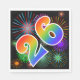This exciting, fun, and vibrant paper napkin design features a colourful celebratory fireworks inspired pattern, along with the number "26" featuring a multicolored rainbow inspired gradient pattern, on a black coloured background. Paper napkins like these could be fun to use at a party being held to honour somebody’s twenty sixth birthday, or perhaps a couple’s twenty sixth wedding anniversary, or some other 26th event. [~Z0000340]