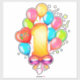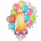 A vibrant graphic illustration depicting a first birthday celebration featuring colourful balloons, decorative confetti, and a cheerful number one centerpiece.