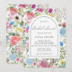 Floral Arch Frame Bridal Shower Invitation with pretty wild country flowers in purple, lavender, green leaves and more, with an elegant editable background