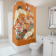 Cranes and Sakura in a Colourful Vintage Pattern - Japanese Bird and Floral Folk Fashion on an Orange Background.